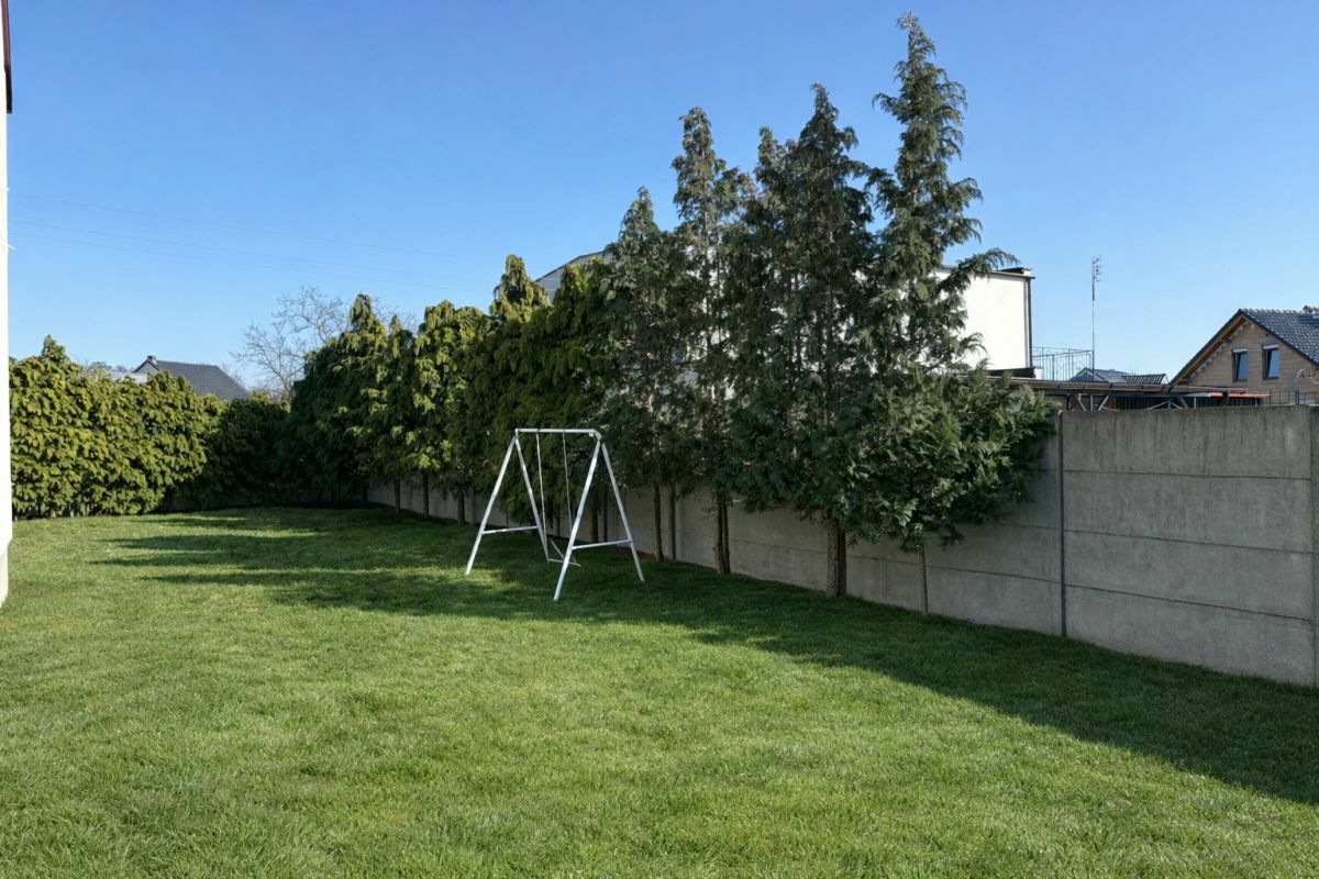 Na posesji znajduje się również duży garaż, który może pełnić funkcję zaplecza technicznego, magazynu lub dodatkowej przestrzeni użytkowej.