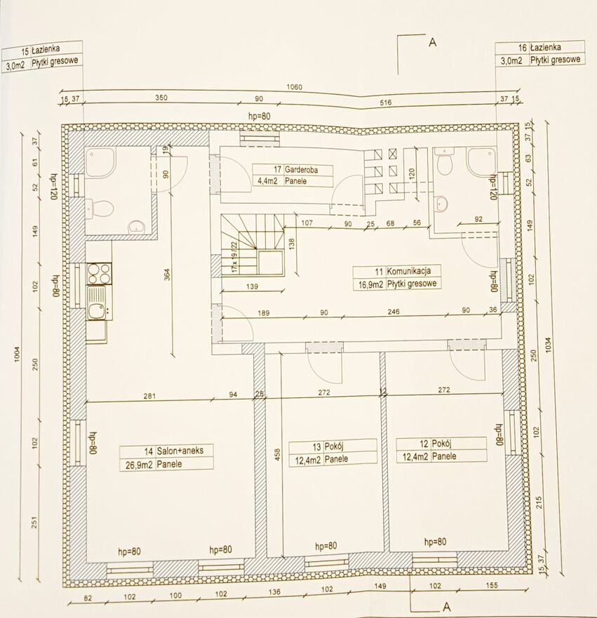Powierzchnia całkowita budynku: 350 m²