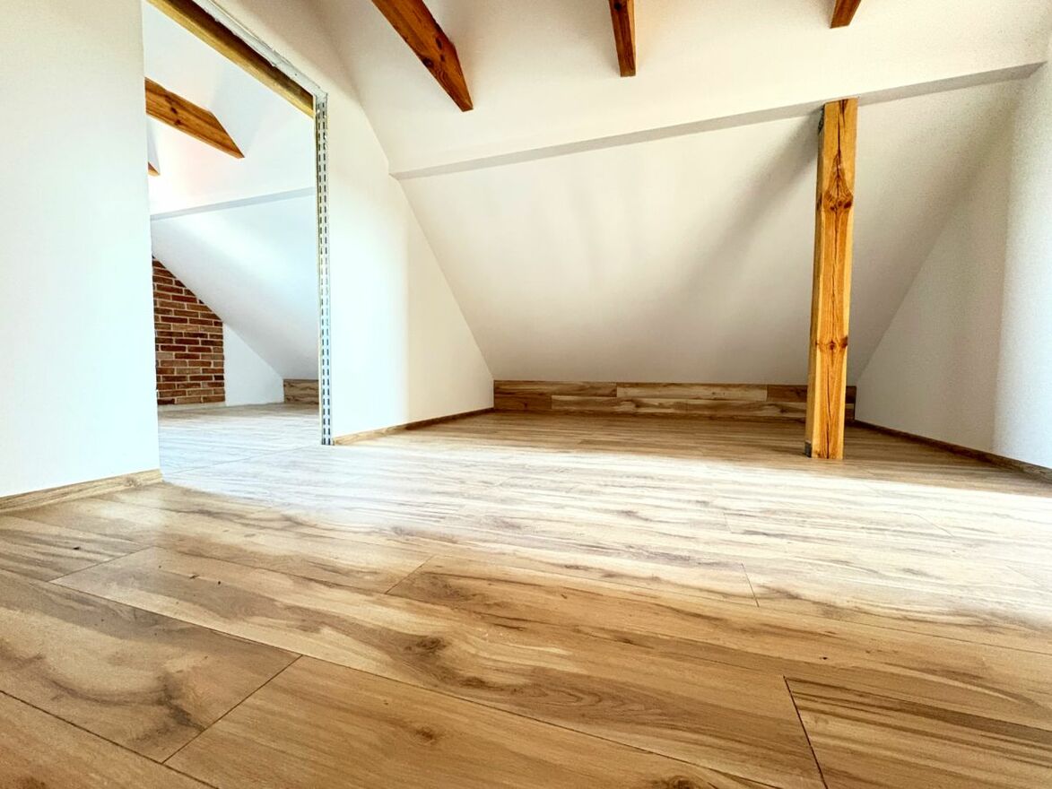 Rozkład pomieszczeń pozwala na prowadzenie działalności noclegowej bez konieczności dużych zmian konstrukcyjnych. Poddasze jest już wykończone, co umożliwia etapowe uruchamianie inwestycji.